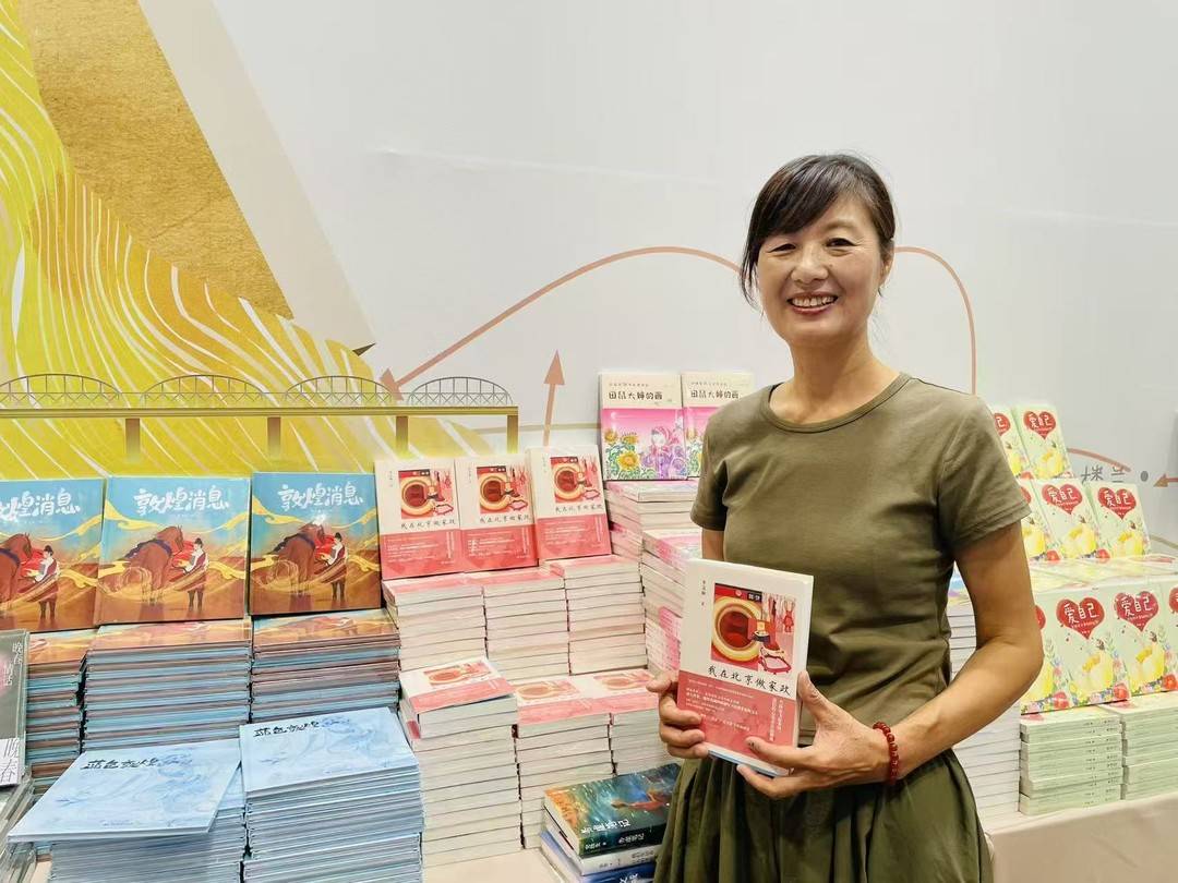 李文丽在第二十六届深圳读书月“劳动者文学好书”领奖台上