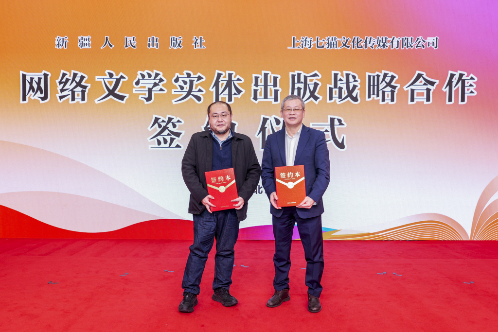 1月9日,在第38届北京图书订货会上,知名网络文学平台七猫与新疆人民出版社举行战略合作签约仪式。双方将在新疆题材文学创作、主题出版与融合传播等领域开展深度合作,共同探索网络文学与传统出版协作的新模式,助力新时代新疆故事的文学表达与广泛传播。