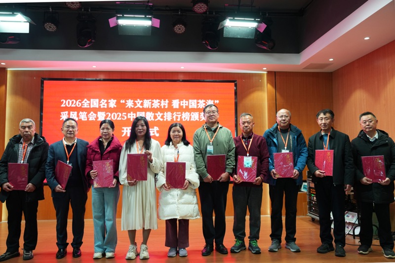 颁奖会期间,与会作家还到文新茶庄、新茶叶科技园、信阳毛尖茶博物馆等地参加文学实践活动。主办方还举行了《海外文摘》2026年签约作家仪式。(编辑:尹超)