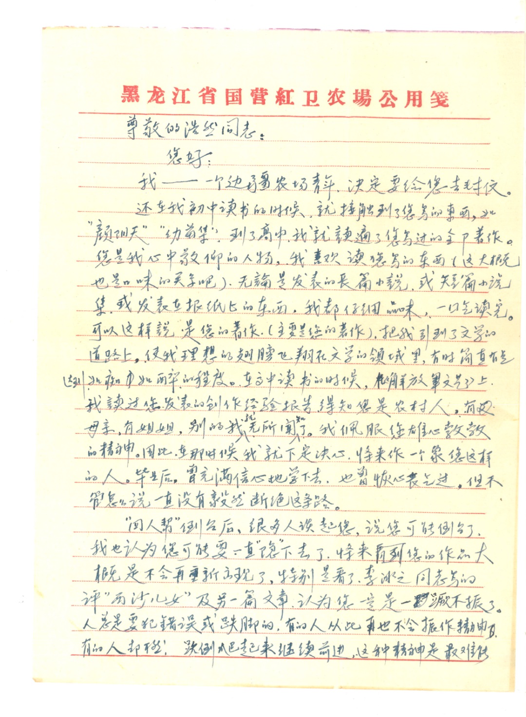 [8]浩然1976年11月4日致马贵民信,《浩然书信集》,未刊,后同。