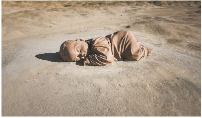 最近一段时间,多件公共艺术作品陷入争议。图为其中一件——位于瓜州的《大地之子》雕塑。(图源:视觉中国)