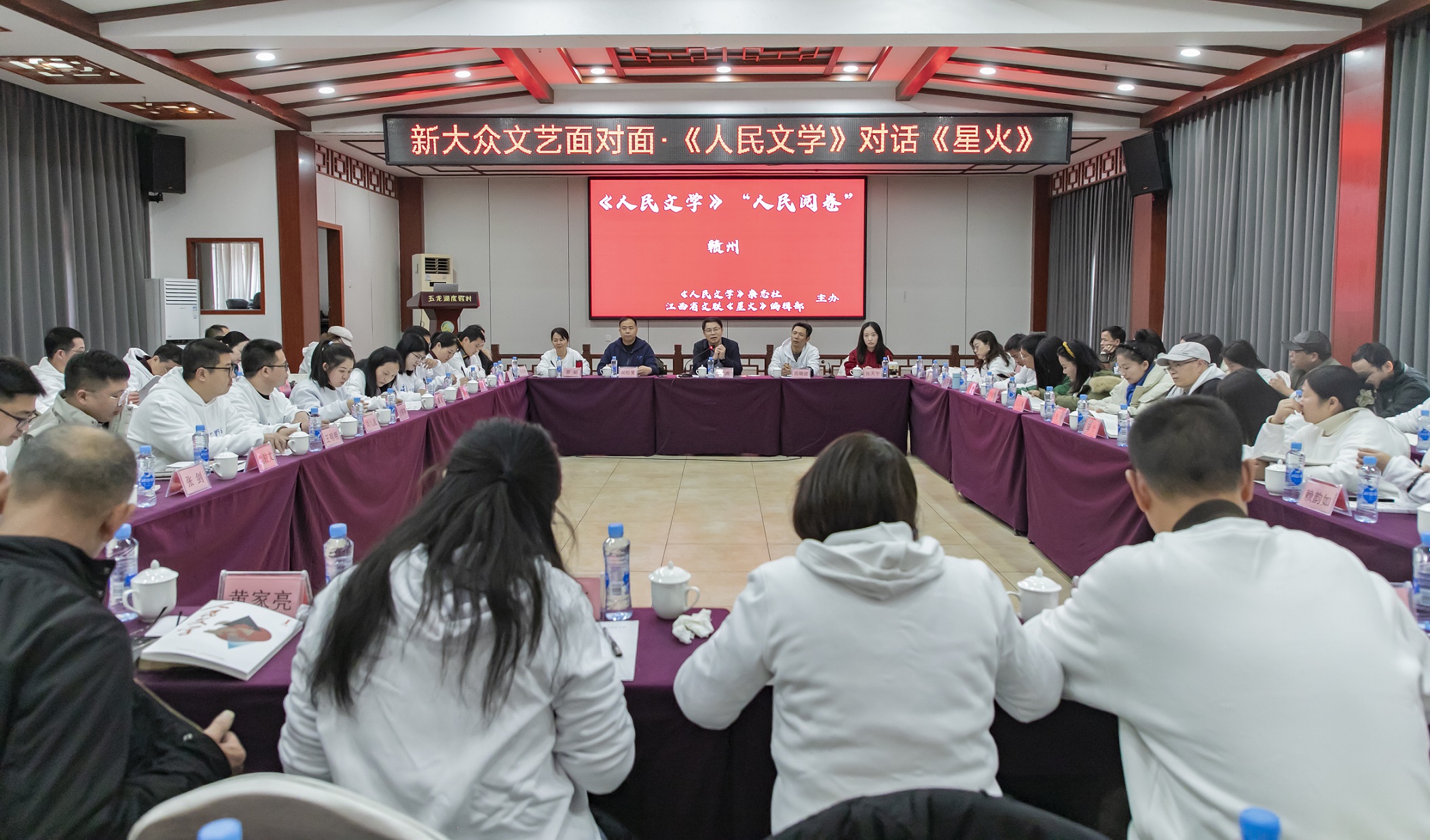1月24日,由《人民文学》杂志社和江西省文联《星火》编辑部联合举办的“新大众文艺面对面•《人民文学》对话《星火》暨“人民阅卷”活动在江西赣州举行。江西省文联党组书记饶利萍,《人民文学》杂志社副主编陈涛,江西省文联党组成员、挂职副主席倪爱珍,《星火》主编范晓波,赣州市文联党组书记周光仁,赣州市作协主席郭玉芳,以及曾娟、刘飞燕、胡松夏、张天宇、李洋洋和《星火》驿站骨干共60多人参加。活动由范晓波主持。