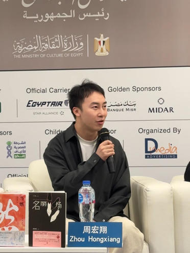 应开罗国际书展官方邀请,来自北京师范大学的中国青年作家麦苏、周宏翔、鲁般与中国图书进出口(集团)有限公司周佳作为中方代表参加第57届开罗国际书展。当地时间2026年1月23日,由开罗国际书展官方主办的“当代中国青年作家笔下的现在与未来”主题分享论坛在埃及国际展览中心国际报告厅举办。埃及青年汉学家、翻译家伊曼·马基迪担任翻译,埃及汉学家、出版人白鑫主持活动。