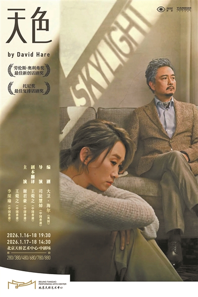 英国剧作家大卫·海尔创作于1995年的《Skylight》(《天窗》)是一部经得起时间考验的作品。它在首演翌年获得奥利弗奖年度最佳剧目,2014年英国国家话剧院复排该剧,并将其制作成NTLive戏剧电影,引进中国放映后也广受好评。近日,由司徒慧焯导演,谢君豪、王菀之主演的粤语版来京巡演。