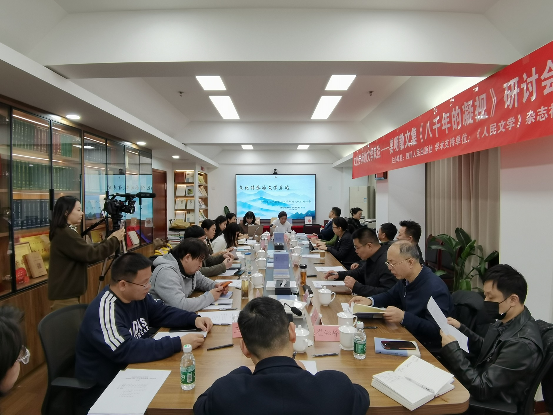 与会专家从“文化传承的文学表达”切入,认为《八千年的凝视》是以文化传承的独特视角回溯文脉延续、解码名人名胜的著作。大家表示,该书以汉字为凝视的核心意象,将整个中国文明史巧妙勾连,其内容聚焦巴蜀文化,在一定程度上让地方性文化呈现出普遍性意义,使巴蜀文化成为展现中国地方文化特质的典型切片与鲜活样本。