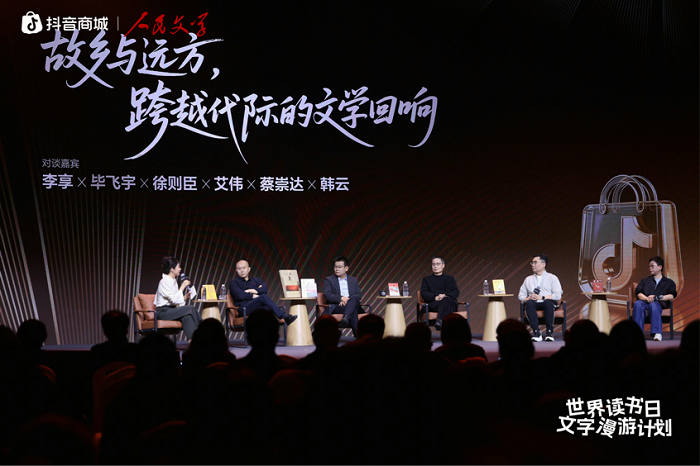 4月18日晚,《人民文学》杂志社携手抖音商城,在阿那亚举办文学之夜·首届文学大赏荣誉盛典。作为世界读书日·文字漫游计划的重磅环节,盛典现场吸引数百位文学爱好者,抖音平台进行全程直播,直播间最高同时在线人数突破20万,总观看人数突破400万,相关话题在社交平台持续发酵。在开幕圆桌环节,作家毕飞宇、艾伟、蔡崇达、韩云和《人民文学》杂志社主编徐则臣,围绕“故乡与远方,跨越代际的文学回响”主题进行交流。