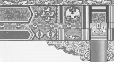 这套画册由北京文物整理委员会刘醒民、王仲杰编集,是书内收中国古建筑图样36幅,由北京彩画界老艺人刘醒民、陈连瑞等按照清乾隆时期以后的彩画规制绘制,可谓包括了清代建筑彩画图案的精华。此本大约在1955年由人民美术出版社彩印。——摘自书格网