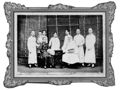 | 吴祖光祖父吴琳、祖母庄还全家福。(后排右二为三子吴瀛,后排右三为长女吴琴清)资料图片 |