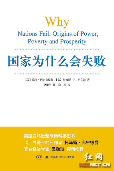 6月初,由湖南科技出版社出版的《国家为什么会失败》一书简体中文版面世。对于这些已经困扰人类几个世纪的问题,本书作者德隆·阿西莫格鲁和詹姆斯·A.罗宾逊,给出了通俗而深刻的回答: