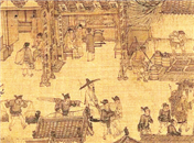 从《清明上河图》上可以清晰地看到,商人比比皆是,商品琳琅满目。汴河两岸店铺林立,街道上游人如织。穿过城门进入内城,更是一派热闹繁华光景。 在市场布局上,汴京打破了唐朝市坊分家的格局,商铺开设较为自由,除了固定铺面,游商还可沿街叫卖或摆摊设点。