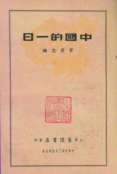 《中国的一日》 上海生活书店1936年9月初版,内封。