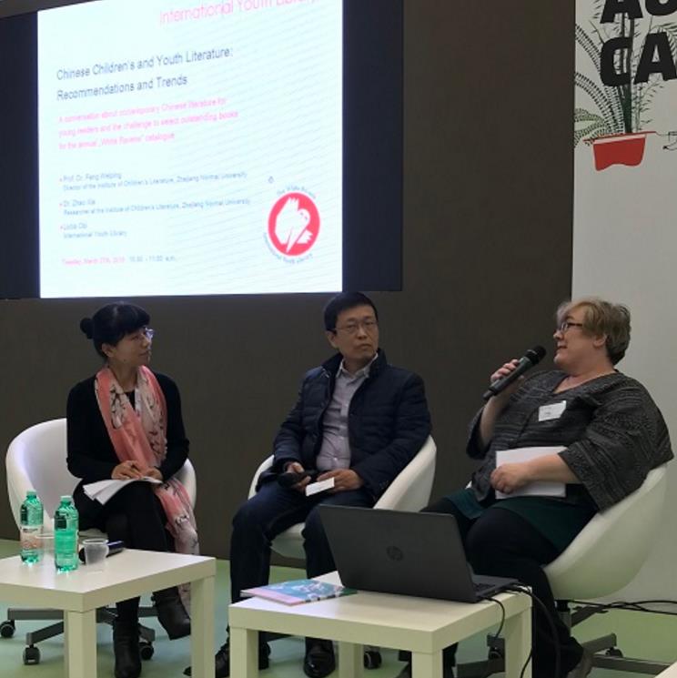 3月27日,意大利博洛尼亚国际童书展开展第二日,在书展作家咖啡角举办了一场由德国慕尼黑国际青少年图书馆策划主办的国际对谈:“中国儿童文学:推荐与趋势”(Chinese Children's and Youth Literature: Recommendations & Trends)。浙江师范大学方卫平教授、浙江师范大学赵霞博士两位中国学者应邀参与对谈,与慕尼黑国际青少年图书馆欧雅碧(Lucia Obi)女士一起,就中国儿童文学发展的现状及主要趋向展开对谈。