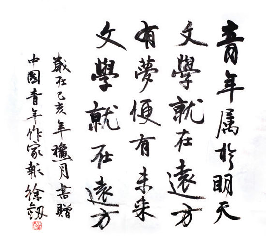 徐剑为《中国青年作家报》题词。岳琦/制图