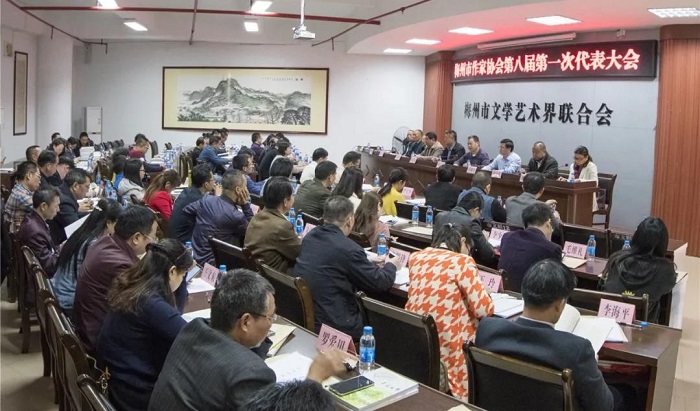 1月11日,广东梅州市作家协会第八届代表大会在市文联文艺讲堂召开。来自市直、梅县区、梅江区、兴宁市、五华县、丰顺县、平远县、蕉岭县、大埔县的市作协会员代表共88人参加了会议。梅州市文联党组书记、主席陈锐锋出席会议并作了讲话,梅州市文联党组成员、副主席陈桂昌,梅州市民政局社会组织管理办公室主任陈伟东出席了会议。会议由魏宇文主持。