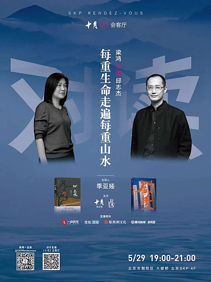 5月29日晚7点,《十月》skp会客厅“对读”系列首场,梁鸿邱志杰各携新书《四象》《剧透》,相对夜读,邀您共享。