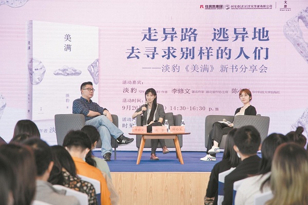 9月26日下午,80后作家淡豹携新书、小说集《美满》做客武汉时见鹿书店,与作家、湖北省作协主席李修文对谈,畅聊生活写作话题。