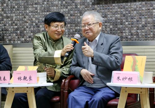 分享会上,林乾良老先生为毛晓春点赞。记者沈贞海 摄