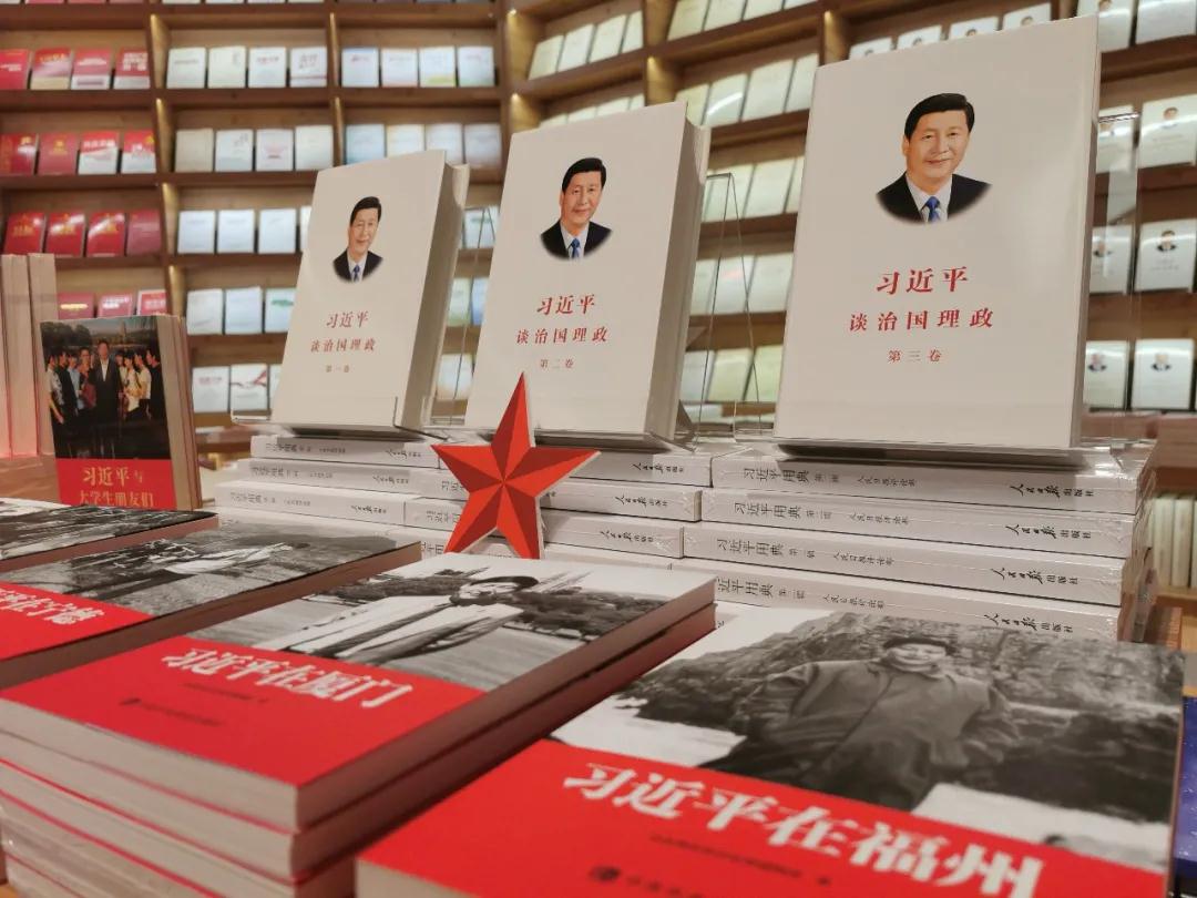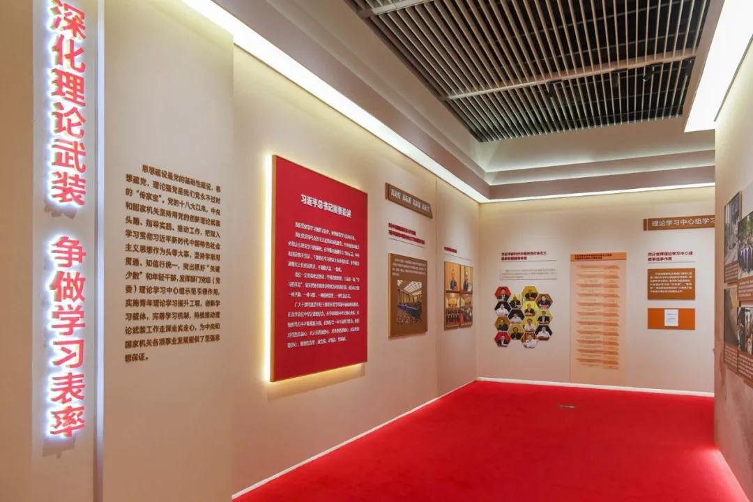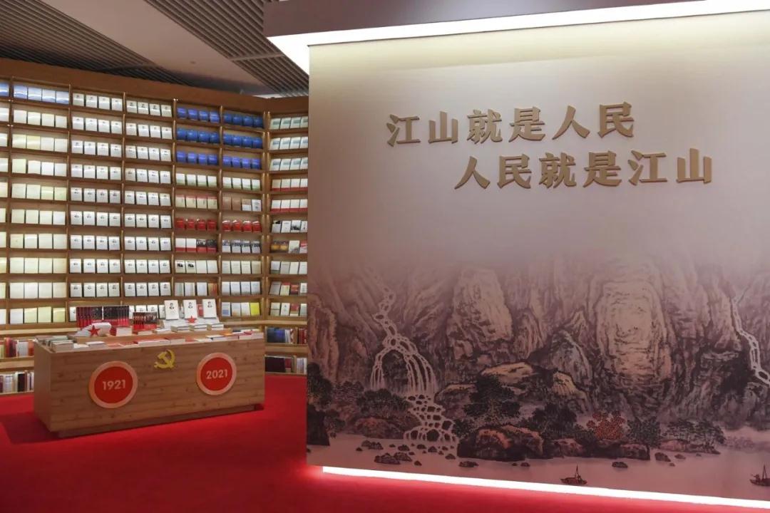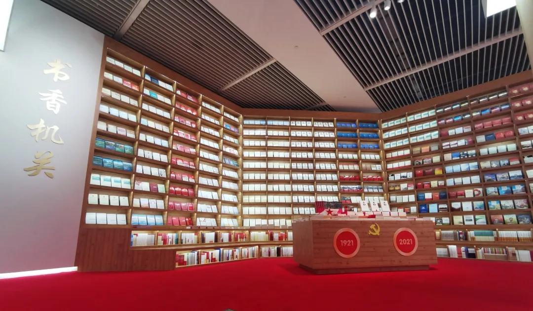 书香机关:学习习近平新时代中国特色社会主义思想的主题书架,汇集了中央和国家机关各部门编写出版的3000余册理论读物,是党员干部的理论学习“打卡地”,让大家在观展之余品读书香、感悟思想。