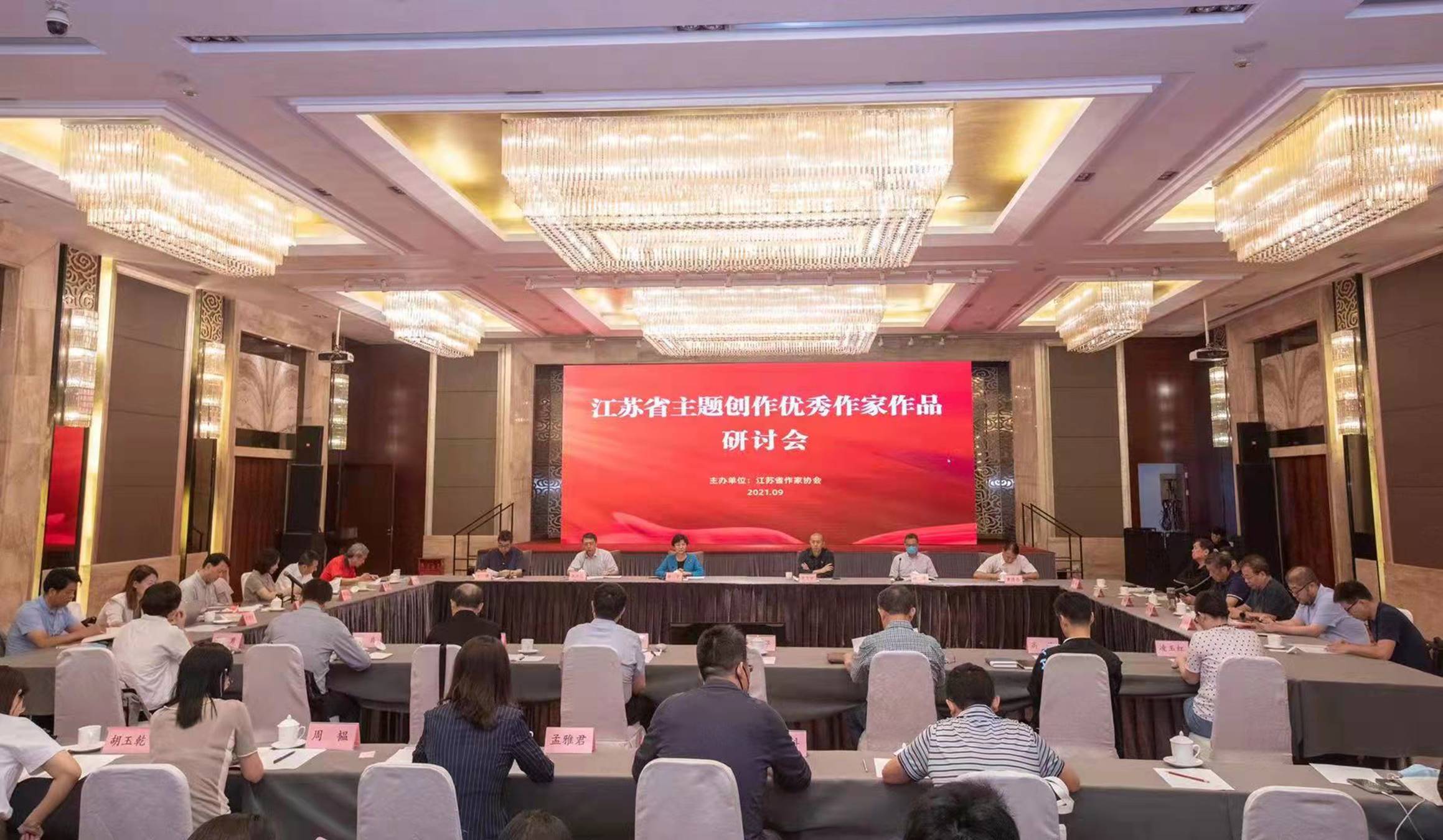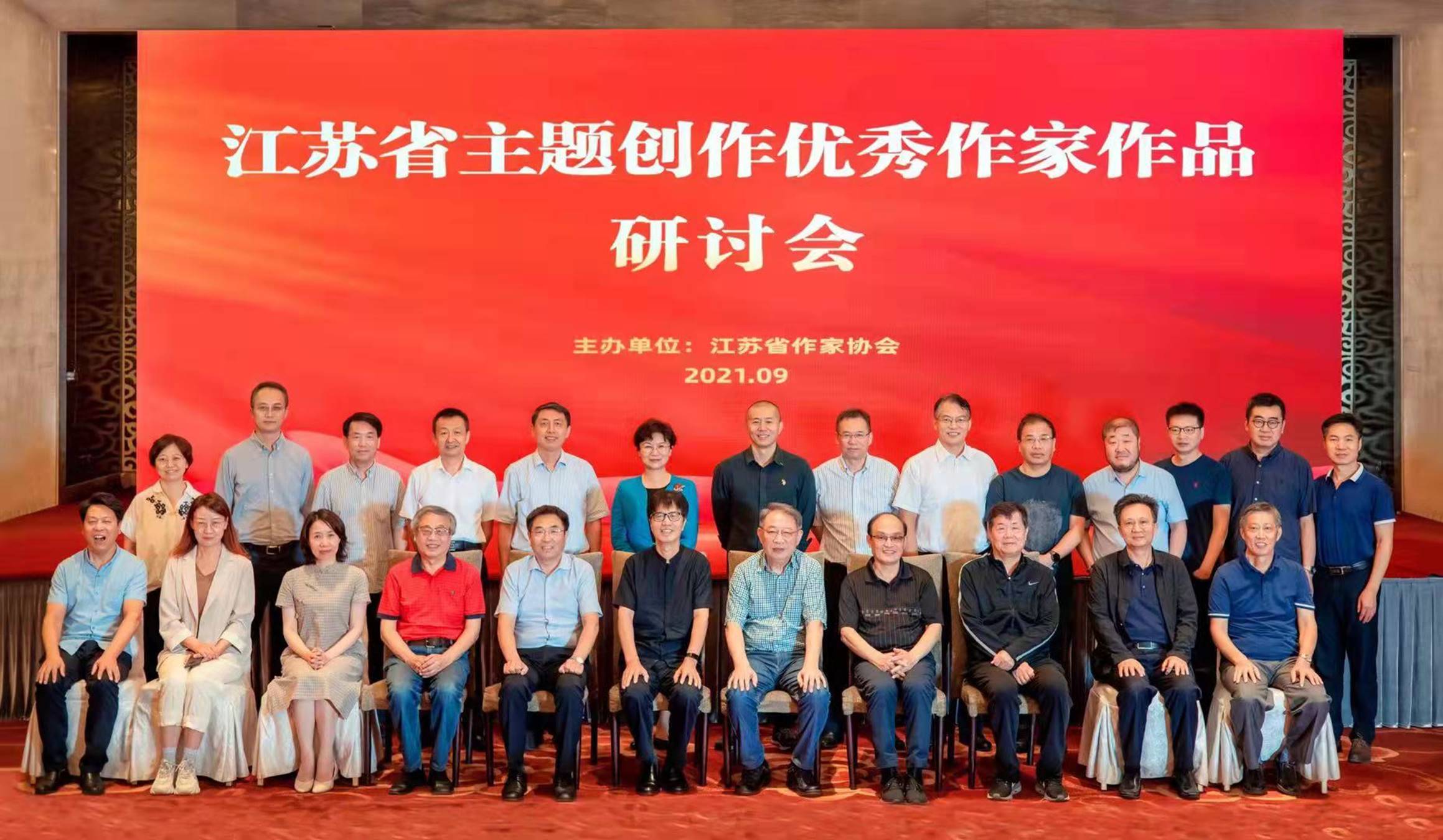 9月29日,江苏省主题创作优秀作家作品研讨会在南京举行。会议对近年来江苏主题创作情况进行回顾,重点围绕章剑华、周桐淦、张新科、傅宁军四位省内从事主题创作的优秀作家及其作品进行研讨。江苏省委宣传部副部长徐宁,江苏省作协主席毕飞宇,党组书记、书记处第一书记、常务副主席汪兴国,党组成员、书记处书记、副主席丁捷,党组成员、书记处书记黄德志,凤凰出版传媒集团有限公司副总经理、总编辑徐海,及20位专家学者参会。中国作协党组成员、书记处书记吴义勤以视频连线的方式参与本场研讨。