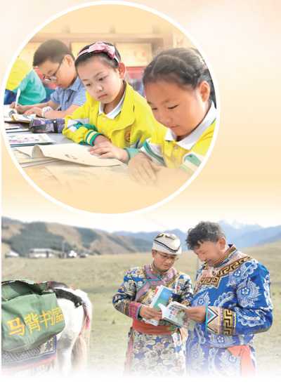 上图:孩子们在甘肃天水什字坪村农家书屋看书。 周文涛摄 下图:甘肃肃南西岭村“马背上的书屋”为群众送书上门。 甘肃省肃南裕固族自治县委宣传部供图