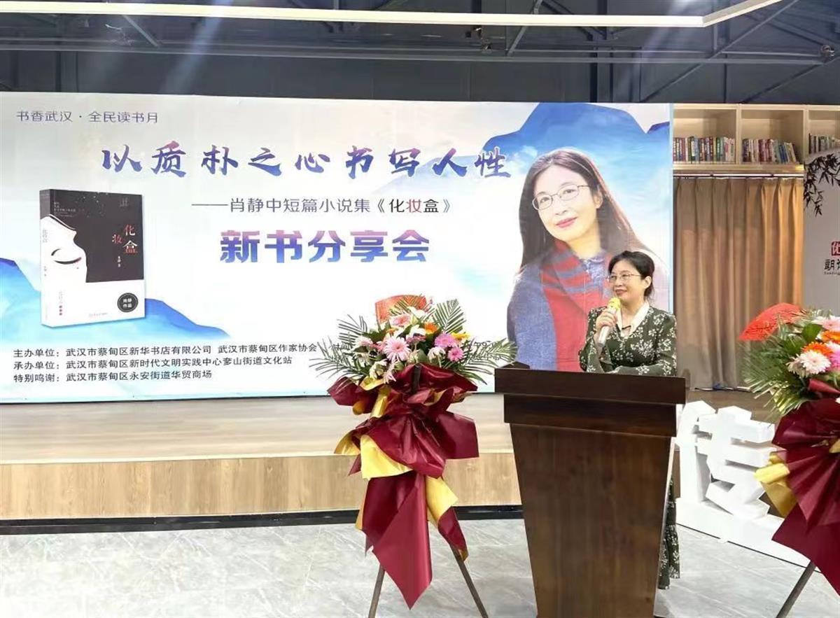 6月26日,中国作家协会会员肖静中短篇小说集《化妆盒》新书分享会在武汉市蔡甸区举办,50多名作家、文学爱好者及各界代表出席了分享会。活动由蔡甸区新华书店有限公司、蔡甸区作家协会主办,蔡甸区新时代文明实践中心奓山文化站承办。