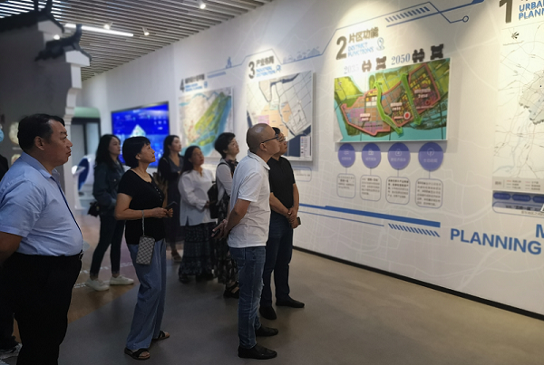 在采访过程中,作家们第一站便来到龙袍新城指挥部,参观新城规划展览馆,龙袍老街参观骨牌灯传习所、渡江胜利公园,到龙袍长江社区、长江渔村、长江湿地、渔光一体、知青家园、东沟林场、茶场等地进行实地走访,对龙袍新城区的“一带两片”、龙袍新城建设规划的一张蓝图绘到底的波澜壮阔有了直观的感觉。