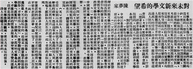 并非不满于现时的文学,成绩是不能抹杀的。抗战八年以前,小说诗歌及文学各部门进快(“快”系手民之误,当为“化”)都很快。
