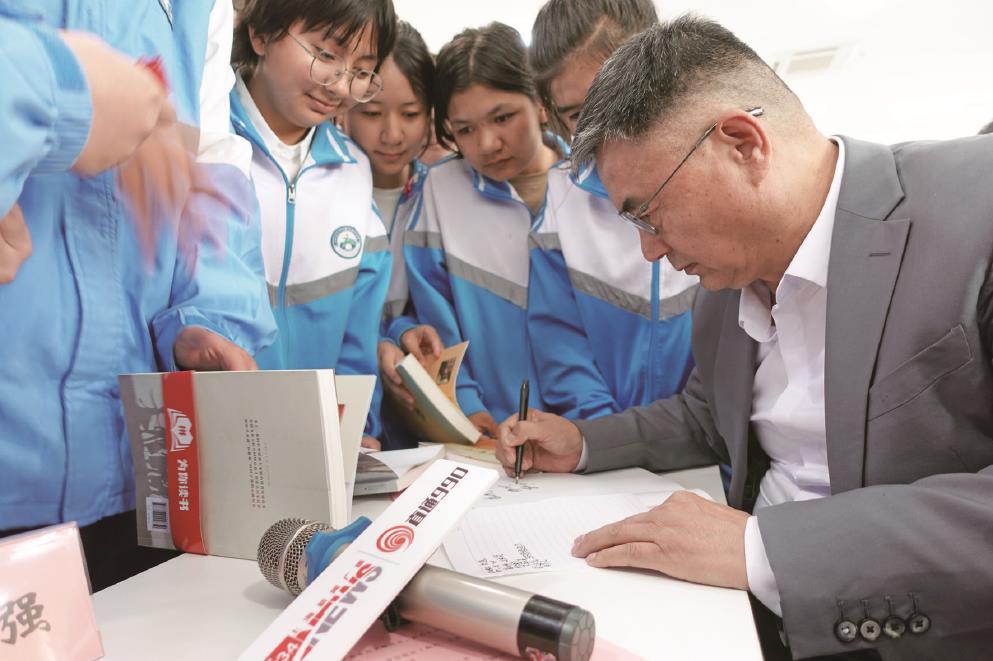 新疆作家协会副主席鞠利为喀什六中的学生们留下寄语 小巩 摄