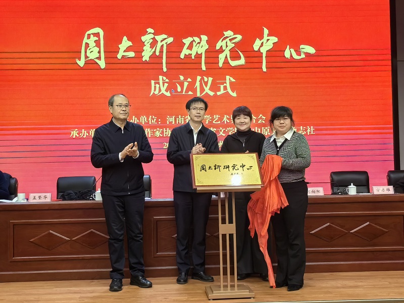 为落实省委关于实施文旅文创融合战略和省委宣传部鼓励豫籍文艺名家“归根还巢”的工作部署,11月26日,周大新研究中心成立仪式在河南省文学院举行。中国作协创研部主任何向阳、河南省委宣传部二级巡视员梁莉、评论家孟繁华、河南省文联党组书记方启雄出席并共同为周大新研究中心揭牌。