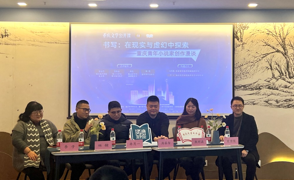 12月27日下午,由重庆市作协、重庆新华出版集团、重庆日报、渝中区委宣传部、丰都县委宣传部主办的“重庆文学公开课”在重庆书城举行。在红岩文学杂志社编辑部主任吴佳骏的主持下,4位重庆本土90后小说家以“在现实与虚幻中探索”为主题,结合自身作品,向观众分享创作经验和创作计划。