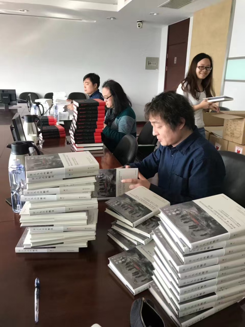 2018年春,余泽民携译著《撒旦探戈》《烛烬》与作家鲁敏在先锋书店做分享活动。左起第四个:余泽民,第五个:本文作者徐琼玉,最后一位:《撒旦探戈》责任编辑王珏