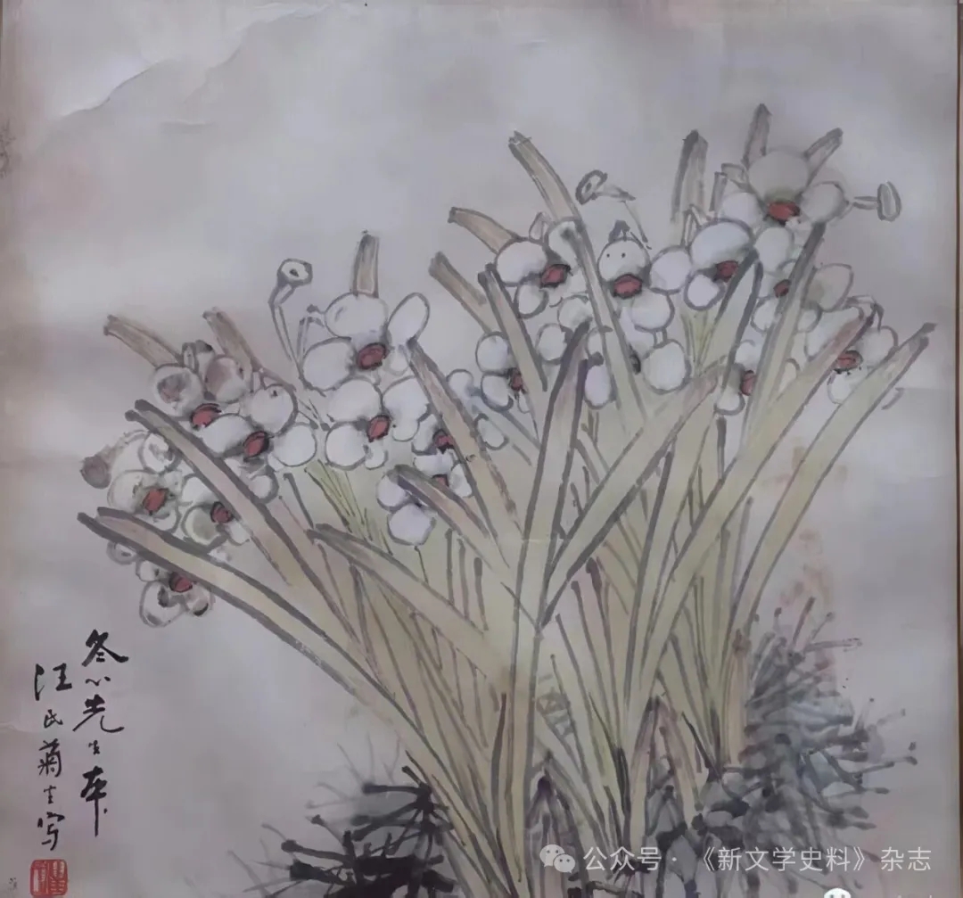 汪曾祺父亲汪菊生是位眼科医生,家乡流传着他许多医者仁心的故事,且多才多艺,亦是一位画家,我于偶然中得到一幅他画的“水仙图”。