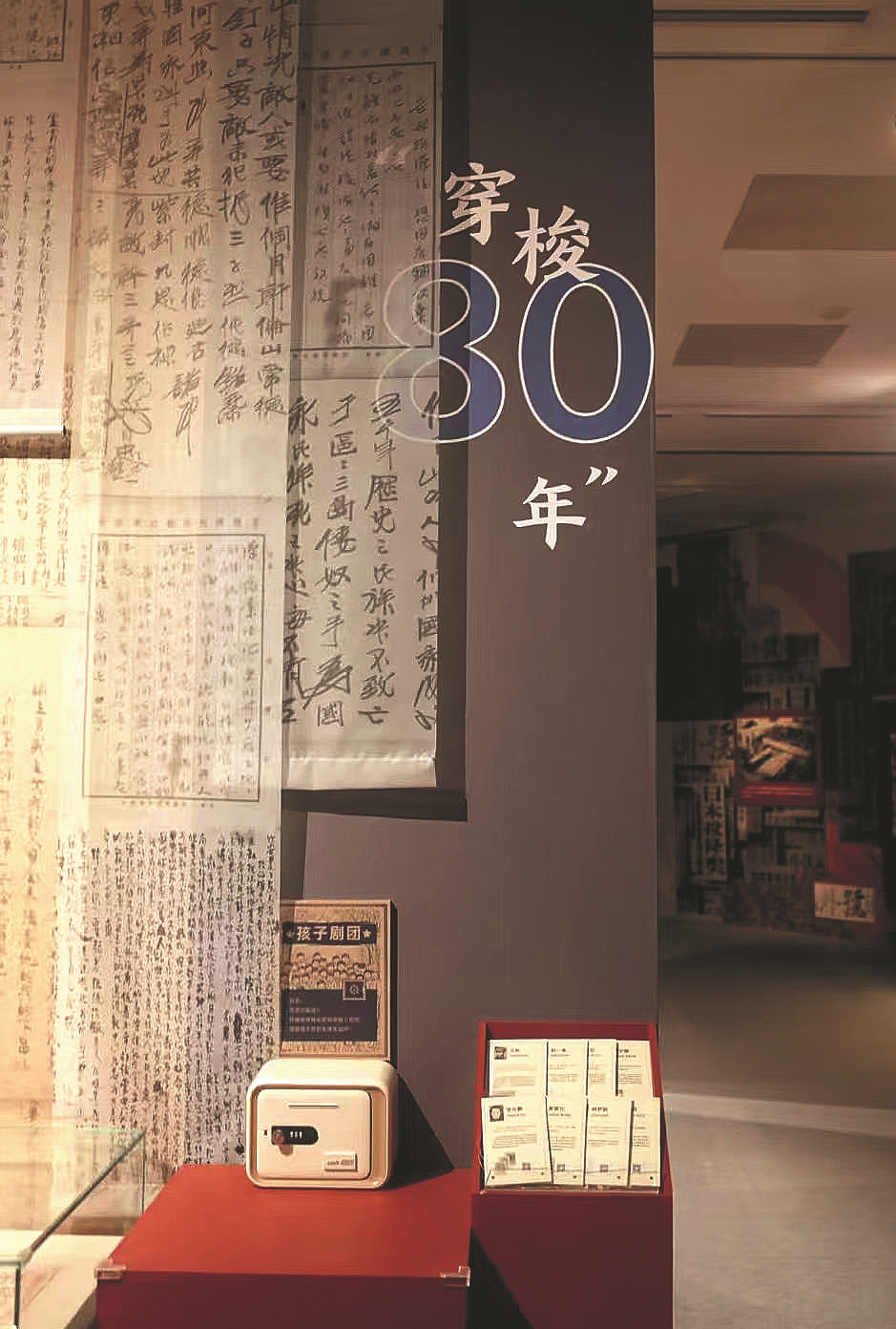 在策划展览时,我们始终在思考:成人能从史料与故事中读懂历史的厚重,那孩子该如何走进这段岁月,感受其中的力量?事实上,抗战岁月里从不缺少孩子的声音——他们或许年幼,却以稚嫩的肩膀扛起了属于自己的责任。1937年8月13日,淞沪会战爆发后,许多孩子在战争中与亲人失散或沦为孤儿。上海临青学校的中小学生自发教难民收容所的孩子们唱歌、识字,并在周末上街宣传抗日。中共地下党组织派吴新稼为孩子们提供学习和生活上的帮助,并于9月3日正式成立孩子剧团。从1937年至1942年,孩子剧团行程8000多公里,足迹遍布苏、皖、豫、鄂、湘、桂、黔、川等8省区的57个县市,演出了《仁丹胡子》《捉汉奸》《乐园进行曲》《猴儿大王》《火线上》《打回老家去》《放下你的鞭子》等街头话剧,共500多场次。正如茅盾在《记孩子剧团》中所写到的:“孩子剧团是抗战的血泊中产生的一朵奇花。日本帝国主义凶残的炮火,摧毁得了中国成千成万孩子们的家庭,但是摧毁不了中华民族的儿女们从血的教训中觉醒了的团结精神。”