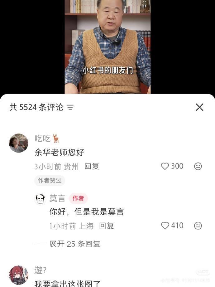 有网友打招呼:余华老师您好!莫言回复:你们,但是我是莫言。