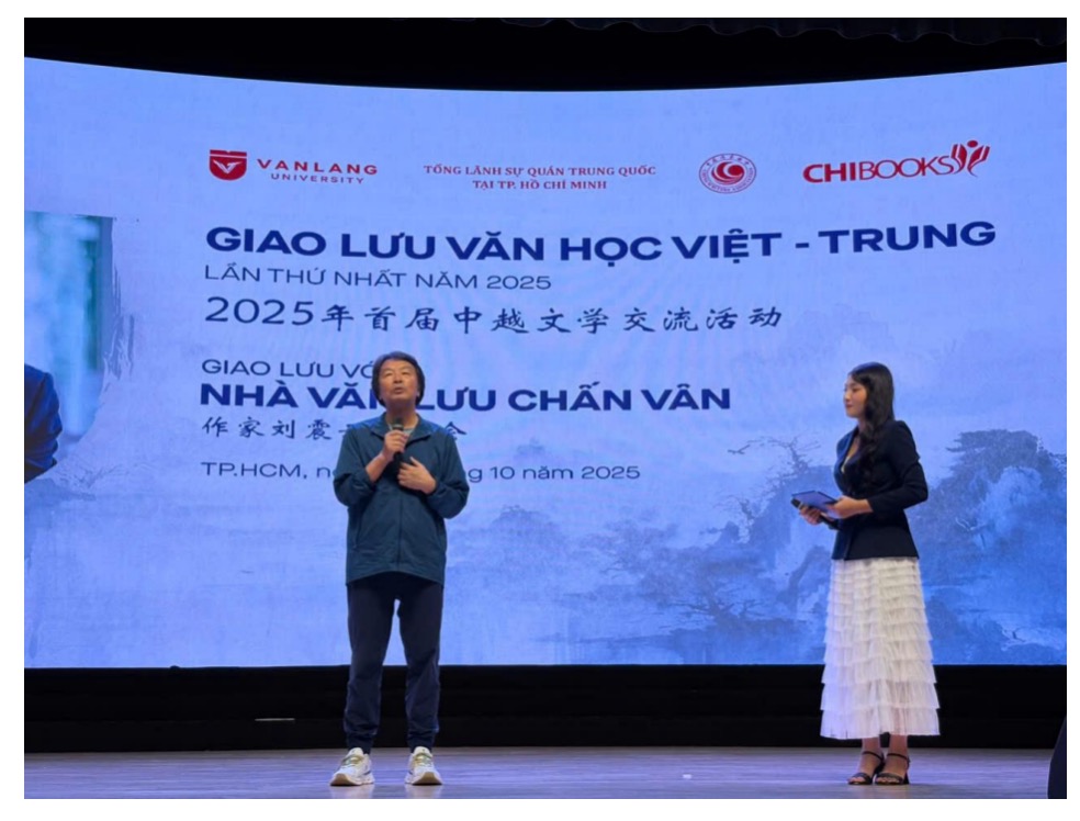 近日,为庆祝中越建交75周年暨“中越人文交流年”,“2025年中越文学交流会”系列活动在越南胡志明市成功举办。本次活动由中国作家协会外联部指导,越南中国文学读者俱乐部、中国驻胡志明市总领馆和越南芝文化公司共同主办,中国著名作家刘震云应邀出席。四场不同主题的文学交流活动分别在胡志明市作家协会、莲花大学、文朗大学和万韵大酒店举行,共吸引2000余名越南作家、诗人、专家、学者、读者参与,在越南当地引发热烈反响。