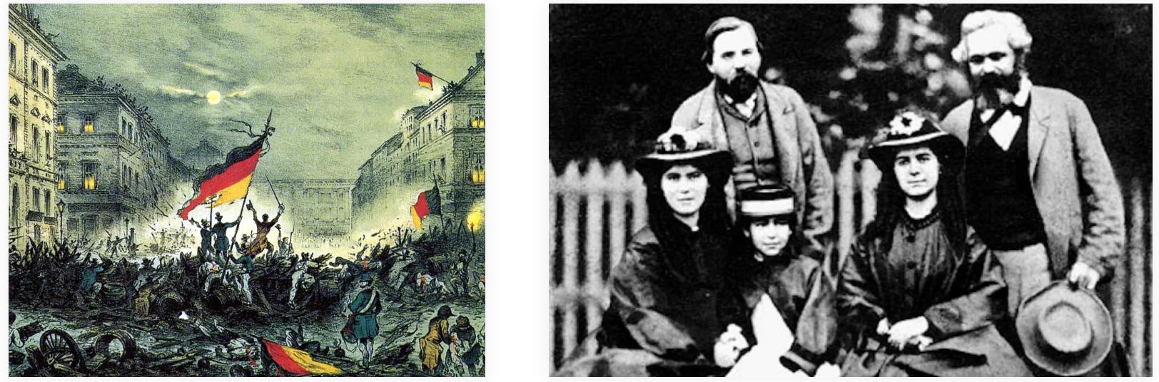 1848年欧洲大革命爆发,但相继失败(左);马克思在伦敦的流亡生活(右)