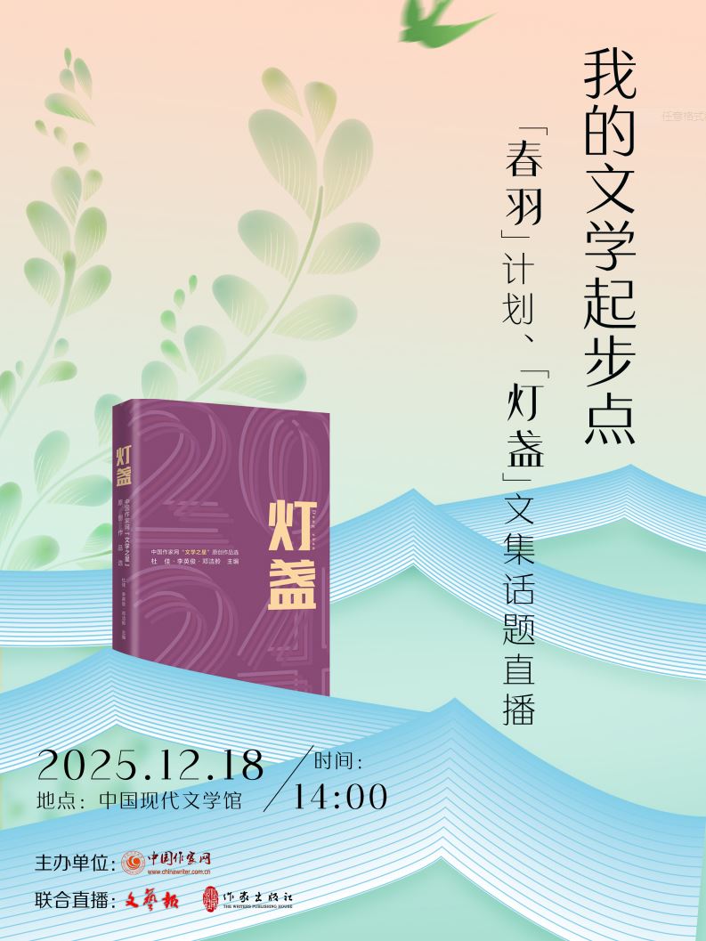 作为关注培养原创写作的公益性平台,中国作家网原创频道尤其重视对青年写作力量的发掘与推介。今年,网站与《青年文学》《校园文学》《文艺报》“新力量”专刊联合发起“‘春羽’青年写作新秀发现计划”,旨在面向高校,寻找并倡导具有新视野、新表达、新审美的新生写作力量。活动期间及更久远的时间里,参与其中的朋友们都有很多话题期待有机会进一步展开探讨。12月18日下午,中国作家网文学直播间“‘春羽’:我的文学起步点”话题直播不仅回溯了“春羽”计划开展以来令人记忆犹新的闪光时刻,“春羽”计划终评委、《青年文学》主编张菁,中国作家网总编辑王杨,以及两位从计划中脱颖而出的获奖作者代表、来自北京电影学院的其乐蒙和北京大学的范愫,共同加入对话,深入交流了在创意写作学科兴起与AI技术席卷的当下,青年写作者如何守护原创的“初心”,迸发表达的“野心”,书写属于自己的文学新章。