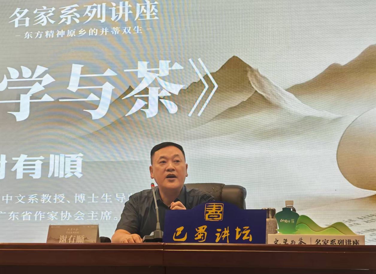 近日,由四川省图书馆巴蜀讲坛主办的"文学与茶"名家系列讲座圆满收官。2025年5月10日以来,先后由阿来、雷平阳、谢有顺、王旭烽、徐风、王军、曾志东共7位名家担任主讲,7期讲座以茶为纽带,串联起文学、历史、哲学、非遗等多重维度。