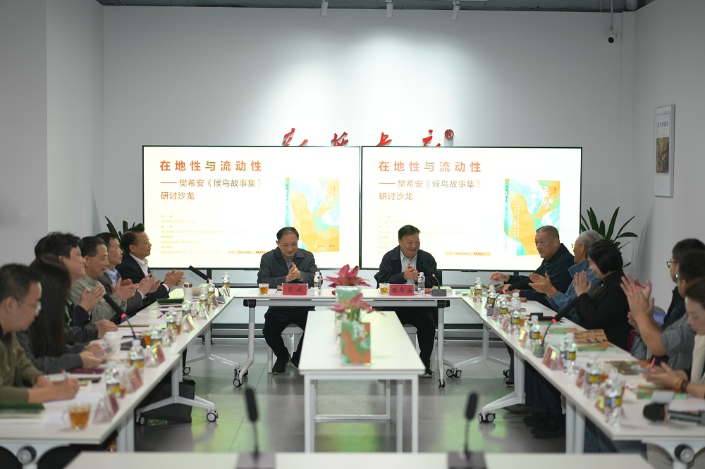 1月24日,由海南省出版发行集团主办,海南出版社、四川文艺出版社承办的“在地性与流动性——樊希安《候鸟故事集》研讨沙龙”在海南海口举行。活动旨在以琼川两地文化联动为纽带,邀请海南本地学者、“候鸟”群体代表及出版界同仁共探新大众文艺扎根大地、流动生长的创新路径。海南省文联一级巡视员、天涯杂志社社长梅国云,海南省出版发行集团董事长吴斌,海南出版社社长古莉,四川文艺出版社社长冯静以及林森、李音、吴辰、黄国柱、王霆钧、钟法权、车延高、赵瑜、艾一百等作家、评论家参加活动。