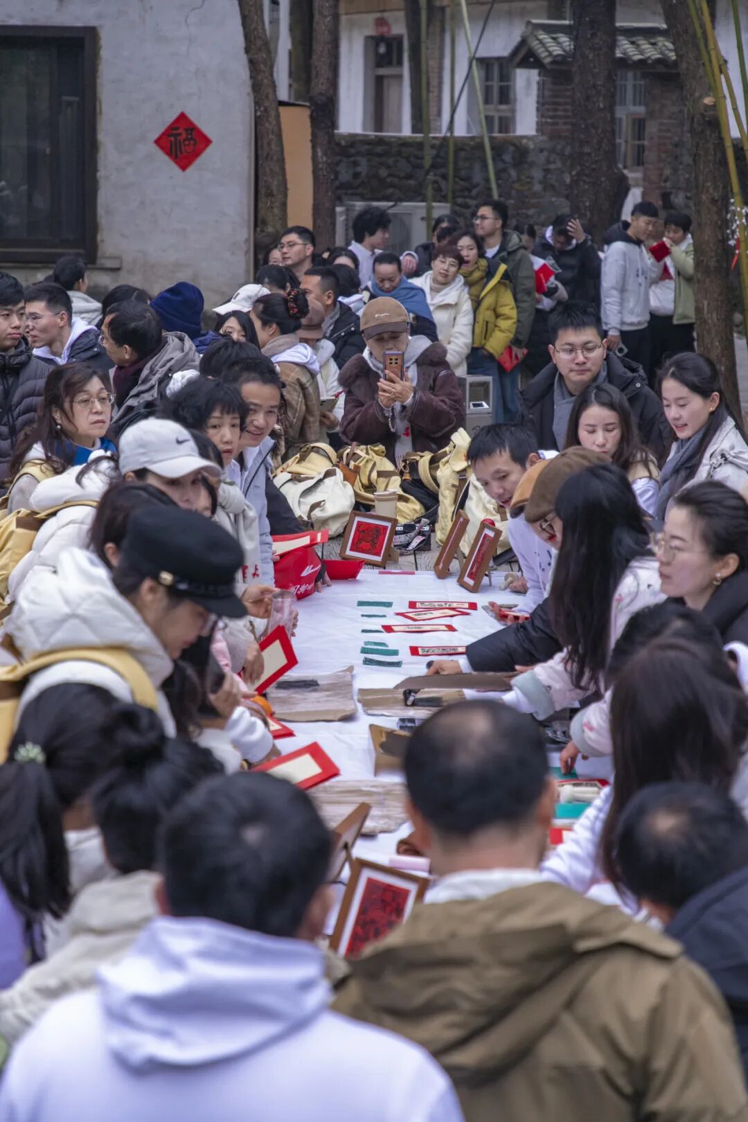 写对联,贴福字,挂灯笼,马灯引路,篝火认亲,拓印《星火》互送文学红包只是文学年的序曲,后面的活动一个比一个人气旺。文学集市的诗歌诊所、故事收购站的摊位前人头攒动,写作爱好者带着自己的作品和疑问请《星火》编辑“望闻问切”。