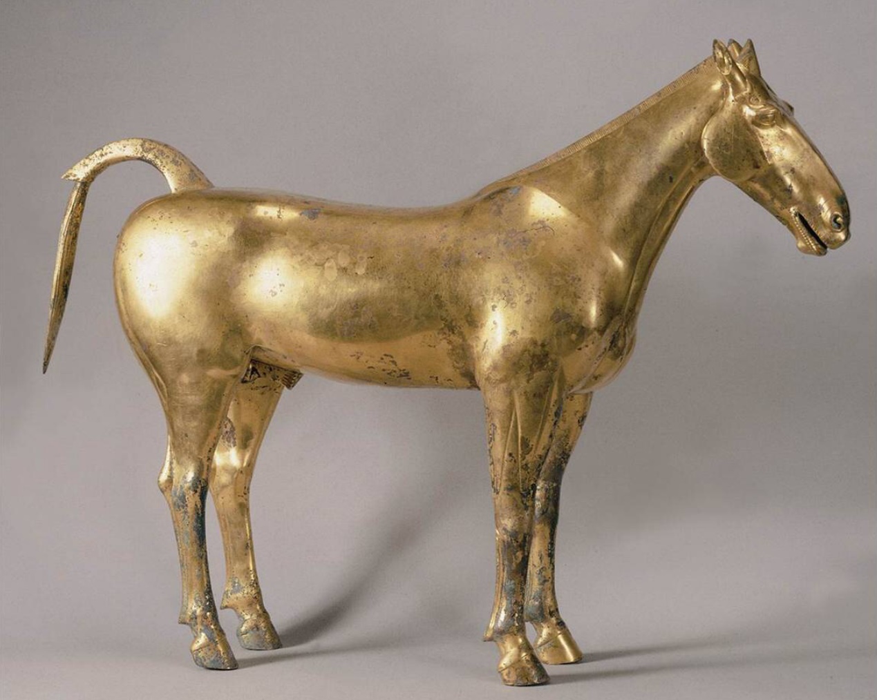 沈从文认为,中国人骑马始于晚周,最先从赵武灵王胡服骑射开始。而马鞍具之类发展仍有一个过程。那么马镫出现于何时呢?上世纪50年代中期,沈从文做了一个推测:马镫“至晚在西汉中叶已经应用”。他从当时已出土的多件文物上的骑士形象进行分析:“这些骑士的驰骤形象,多两脚向上挟举,必足部有所踏镫,才能够做成这种姿势。”他进一步推测,较早的马镫或许只是一个皮圈套,属于鞍鞯的一部分。这个推测后来得到出土文物的证实。【详细】
