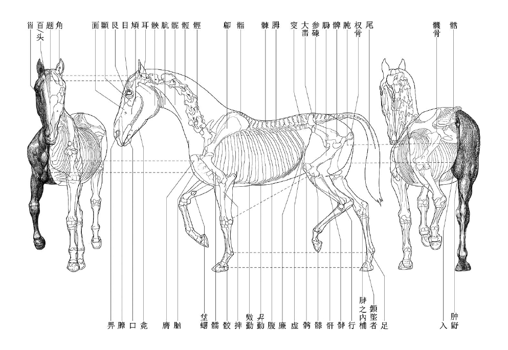 在《诗经》中,提及过马的诗篇有几十首,其中描写牧马盛况的《鲁颂·駉(jiōng)》是专门咏马的诗篇。《駉》的第一章中写道:“駉駉牡马,在坰之野。薄言駉者,有驈(yù)有皇,有骊有黄,以车彭彭。”大意是说成群高大健壮的骏马被放牧在水草丰茂的茫茫原野上,生机盎然。这些生机勃勃的马儿中有黑身白胯的驈、黄白杂色的皇、纯黑色的骊、黄赤色的黄。《駉》有四章,总共描述了十六种骏马,除了第一章出现的四种良马,还有另外十二种,比如苍白杂色的骓、毛色黄白相杂的駓(pī)、赤黄色的骍、毛色青黑相间的骐等。【详细】
