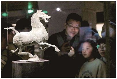 马年,到博物馆“看马”成了潮流。不久前,甘肃省博物馆推出“天驷——铜奔马特展”,通过文物陈列、图文解读、多媒体演示等形式,全方位呈现铜奔马的考古历程、艺术价值与当代影响。