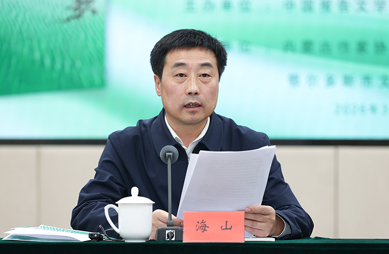 海山在致辞中表示,近年来,内蒙古文学事业在习近平文化思想指引下守正创新、锐意进取,呈现出人才接续、创作丰硕的良好局面。报告文学作为记录时代、见证历史、讲好中国故事的重要文体,已经成为内蒙古文学版图中的一道亮丽风景。肖睿长期扎根乡土、关注现实,《库布其生命歌》是他深入库布其沙漠一线,沉下心采访、俯下身倾听,以数年心血打磨而成的重要成果。作品没有停留于成果展示和数据罗列,而是把笔触伸向一个个具体的人、一段段真实的往事和一次次与风沙的较量,在广袤沙海与人间烟火之间,写出了库布其从“沙进人退”到“绿进沙退”的艰辛历程,也写出了几代治沙人在漫长岁月中坚守奉献、接续奋斗的精神谱系。