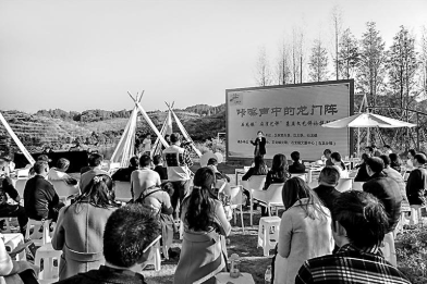 “咔嚓声中的龙门阵”——重庆市巴南区石龙镇“麻雀艺评”基层文艺评论摄影鉴赏活动现场。冯亚宏摄/光明图片