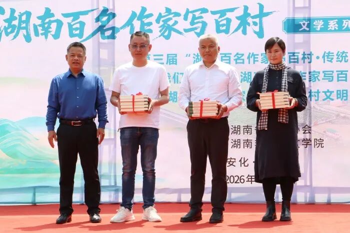 百名作家踏三湘,妙笔生花写百村。4月24日,第三届“湖南百名作家写百村·传统村落”颁奖典礼、《我们的家园:湖南百名作家写百村》新书首发式暨第四届“湖南百名作家写百村·乡村文明建设”启动仪式在益阳市安化县茅园村举行。活动旨在深入贯彻落实党的二十届三中、四中全会精神,深入践行习近平文化思想,充分发挥文学在乡村振兴中的积极作用,以文学力量赋能新时代山乡巨变。