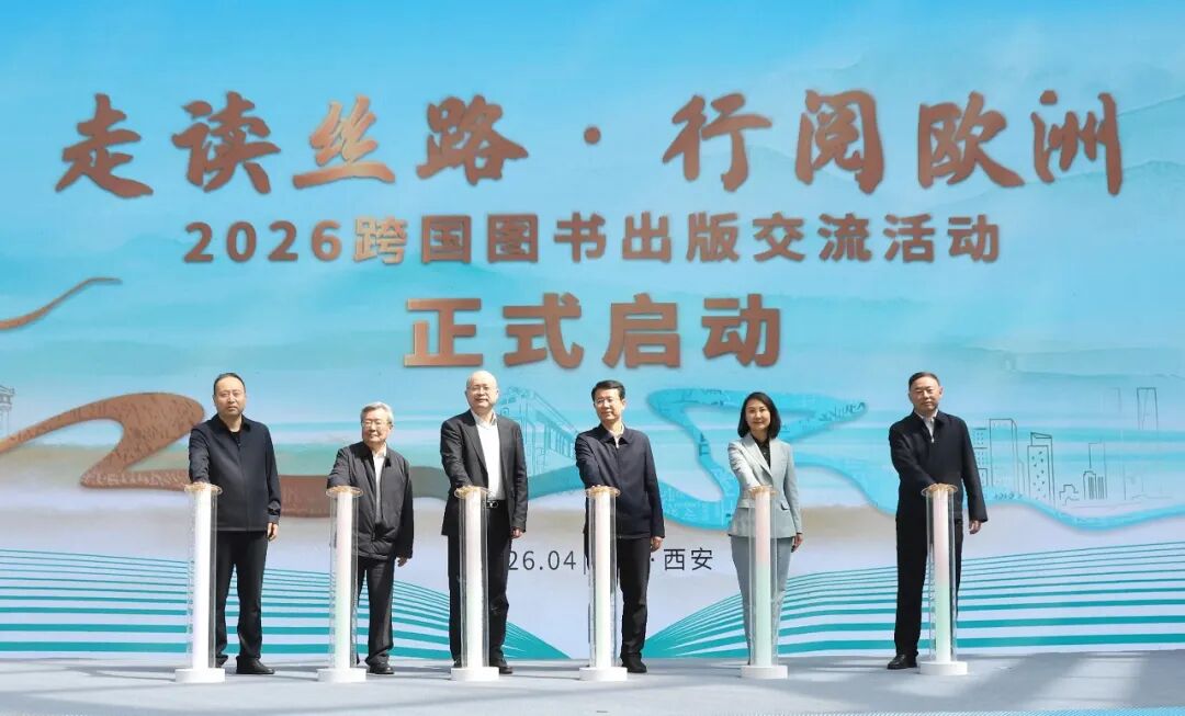 4月24日,由五洲传播中心、陕西新华出版传媒集团主办,陕西人民教育出版社承办的“走读丝路·行阅欧洲”2026跨国图书出版交流活动在西安大唐西市博物馆启动。陕西省委宣传部副部长单舒平,陕西省文化和旅游厅党组成员、副厅长郑晓燕,五洲传播中心党委书记、董事长、总编辑井水清,陕西新华出版传媒集团党委书记、董事长安平,总编辑周维军,文化学者、“走读丝路大使”肖云儒出席并为活动启幕。