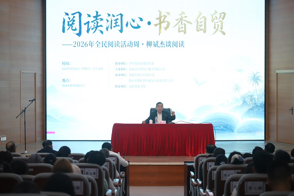 为大力推进书香自贸港建设,4月26日,“阅读润心・书香自贸——2026年全民阅读活动周・柳斌杰谈阅读”主题活动在海南省图书馆报告厅举行。此次活动由海南省委宣传部指导,海南省出版发行集团有限公司主办,海南出版社有限公司、海南凤凰新华出版发行有限责任公司承办,海南省图书馆协办。活动紧扣“世界读书日”与全民阅读工作部署,特邀原国家新闻出版总署署长、党组书记柳斌杰作主旨演讲,赋能海南自贸港精神文明建设。