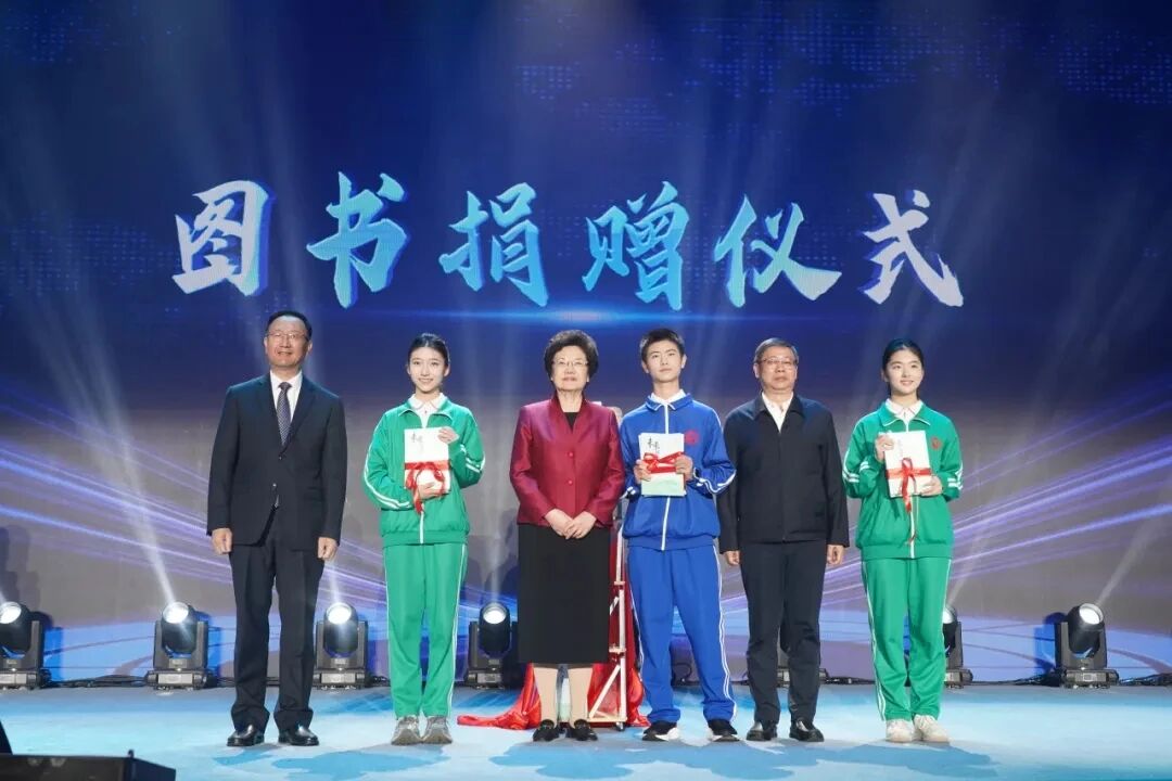 在世界读书日和我国首届全民阅读活动周之际,4月23 日,“未来讲堂——‘颂中华文脉·育鸿志少年’经典诵读会”在江西师范大学附属中学滨江校区举行。十三届全国政协副主席、中国宋庆龄基金会主席李斌出席活动。活动现场,李斌与学生代表共同为新书《未来讲堂——经典元曲诵读与赏析》揭幕,并与中国广播电视社会组织联合会会长范卫平、江西省出版传媒集团党委副书记、副董事长、总经理吴卫东一道,向江西师范大学附中捐赠图书。
