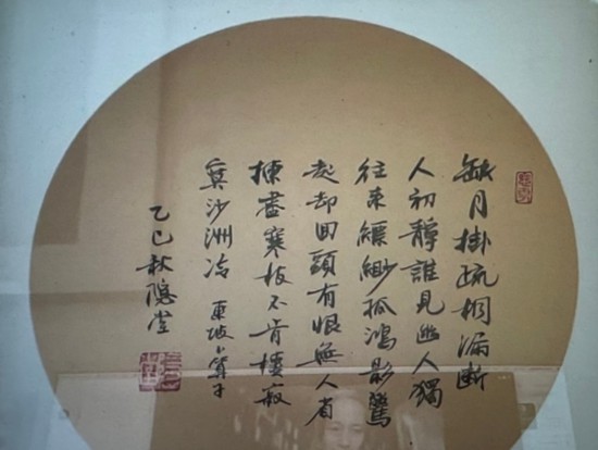 更难得的是,为了让我更直观地了解他的工作环境,艾朗诺教授通过视频向我“展示”了他的办公室。只见他身后整面墙从地面延伸至天花板,被白色书架整齐覆盖,书架分隔成均匀的小格,每一格都塞满了书——有精装本、平装本,也有一些略显陈旧、纸页微微泛黄的旧书。房间中央是一张黑色的小圆桌,配有两把黑色椅子。空间虽满,却秩序井然。他告诉我,书架上的书一侧为中文,另一侧为英文。他还向我展示了几幅“漂亮”的书法作品,其中一幅是苏轼的《卜算子·黄州定慧院寓居作》:“缺月挂疏桐,漏断人初静。谁见幽人独往来,缥缈孤鸿影。惊起却回头,有恨无人省。拣尽寒枝不肯栖,寂寞沙洲冷。”艾朗诺教授解释说,这首词是苏东坡被贬黄州后写下的第一首词,夜深人静时,他独自外出散步,见一只孤鸿在冷空中盘旋,无法栖息——“其实写他自己。”这幅书法作品由学者郑培凯亲笔题写,并赠予艾朗诺。